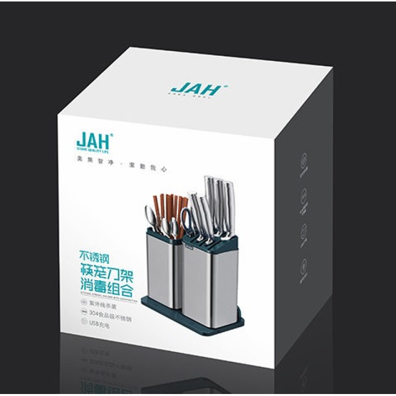 Органайзер для ножів та кухонних приладів JAH з УФ-стерилізатором срібний металік